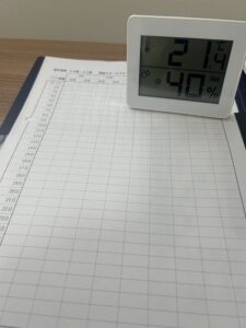 そんな中、居室温度を快適に保持する為、湿度・温度計を各居室に設置。
