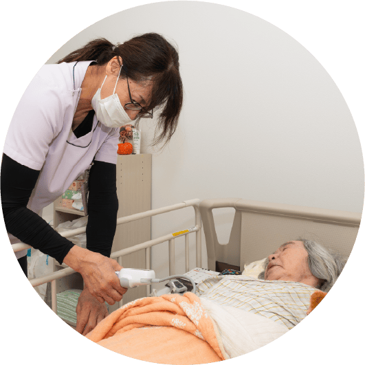 胃瘻、痰吸引などの医療行為のほか、施設内の看護業務全般を行います。
