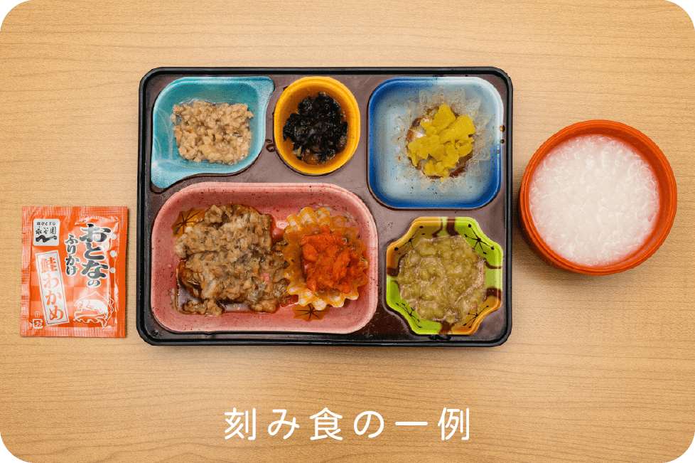 利用者の嚥下状態に合わせた弁当を提供し、常食からムース食まで対応。栄養士監修で栄養バランスも安心、季節感あるメニューで食の楽しみを大切にしています。