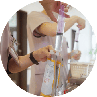 スウィートナースでは夜間に緊急事態が生じた場合でも対応できるよう、看護師が24時間安心できる体制を整えております。一般的な住宅型有料老人ホームでは、外部の事業者による介護サービスを受けますが、当施設には介護士はもちろんのこと看護師も常駐しているため、いつでも必要な介護や処置を受けられます。